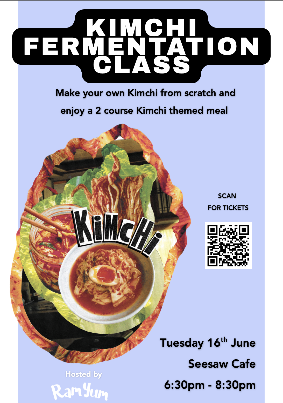 Ferment your own kimchi in this Korean cooking class, while enjoying a 2 course dinner, courtesy of RamYum.