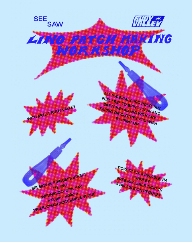 Join artist Rudy Valley for an evening of creating your own lino printed patches.