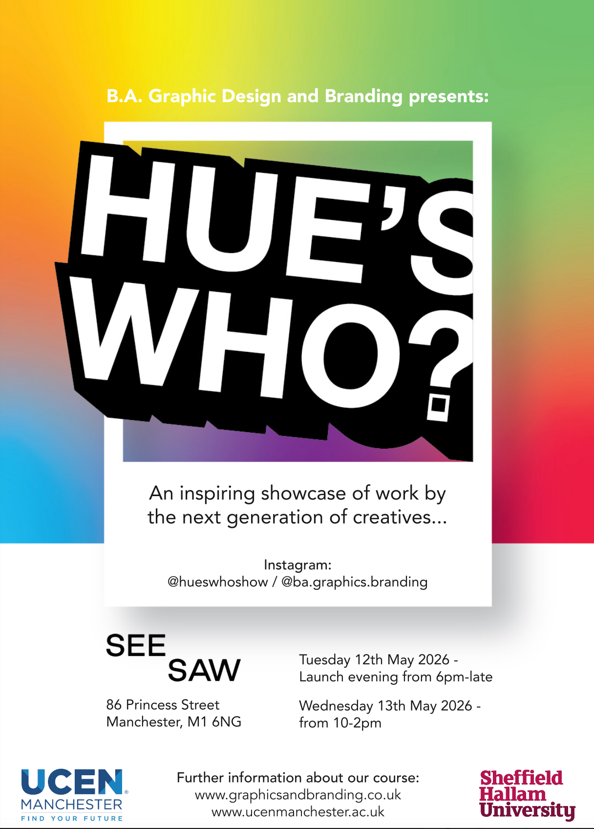 End of year student showcase featuring various project work from live client briefs & creative responses.